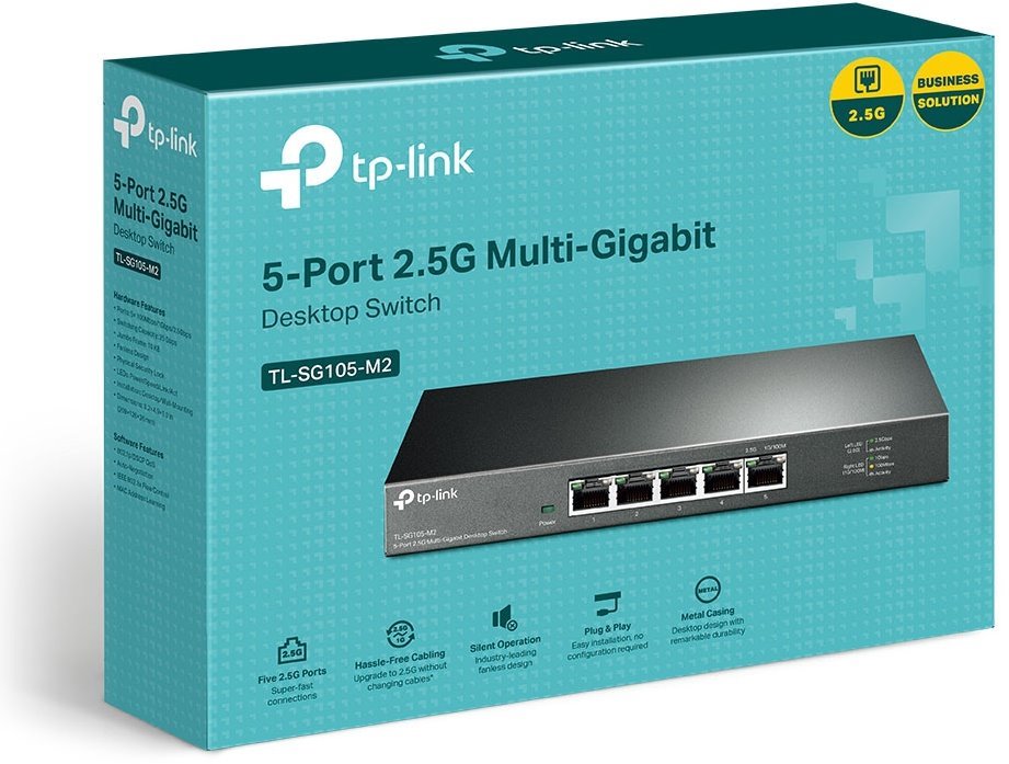 Firma TP-Link přichází s novou řadou Multi Gigabitových switchů, které dokážou navázat až 2.5Gbps link na každém portu. Tento základní model TL-SG105-M2 bez managementu v kovovém šasi má má celkově 5 metalických portů s rychlostí 100M/1G/2.5G , indikač...