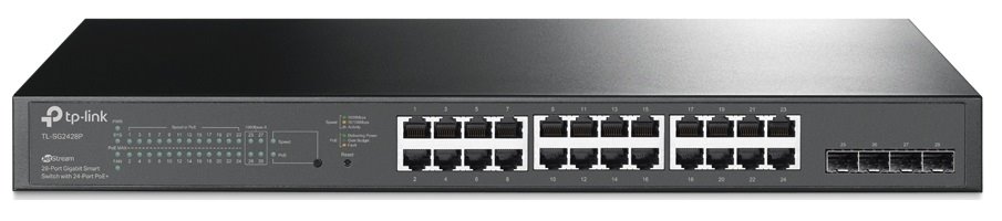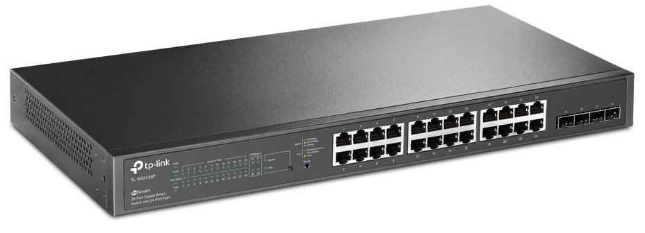 Jetstream TL-SG2428P PoE Switch značky TP-Link je managovatelný L2 switch s funkcí PoE, obsahující 24 Gigabitových LAN portů s funkcí 802.3af/at PoE a k tomu další 4 Gigabitové SFP porty. Switch má celkový PoE budget pro napájení zařízení po kabelu 250...