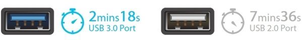 Rozbočovač UH720, vybaven porty USB 3.0, nabízí přenosovou rychlost až 5 Gbit/s, 10 rychlejší než USB 2.0.