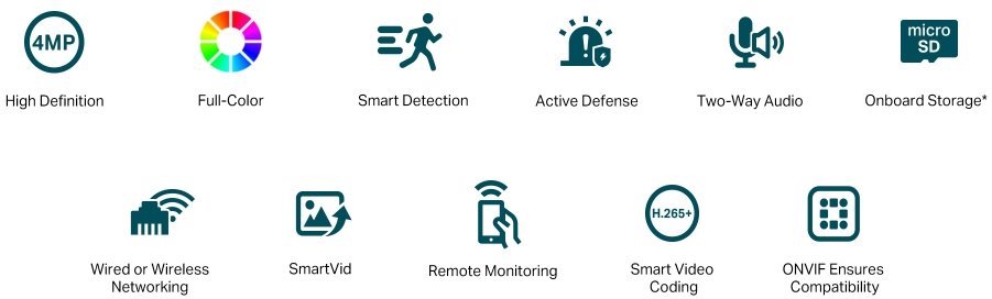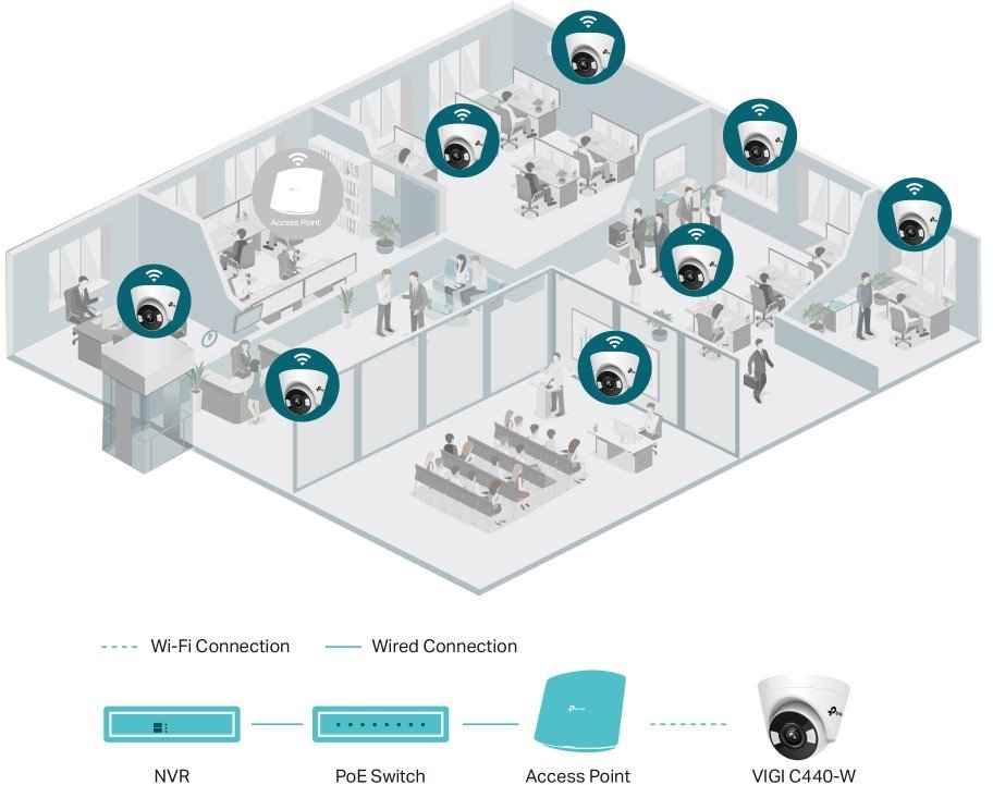 VIGI C440-W(4mm) je 4 megapixelová vnitřní Turret kamera značky TP-Link s fixním objektivem 4 mm, bílým světlem a IR přísvitem do vzdálenosti 30 m, ethernetovým portem bez PoE a 2.4GHz WiFi. Kamera má max. rozlišení 2560 × 1440 px (při 30 fps), pozorovací úhel 79°, 3 nezávislé streamy, digitální WDR snímač, obousměrné audio (mikrofon i reproduktor), slot na microSD kartu a podporu ONVIF a kodeku H.264(+) a H.265(+). Kamera díky větší citlivosti podporuje tzv. Full-Color barevný obraz během celé noci.