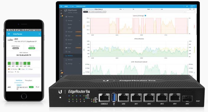 EdgeRouter 6P je 6portový Gigabitový router s 1 SFP portem. I přes své kompaktní provedení dokáže přenést až 3,4 milionu paketů za sekundu.