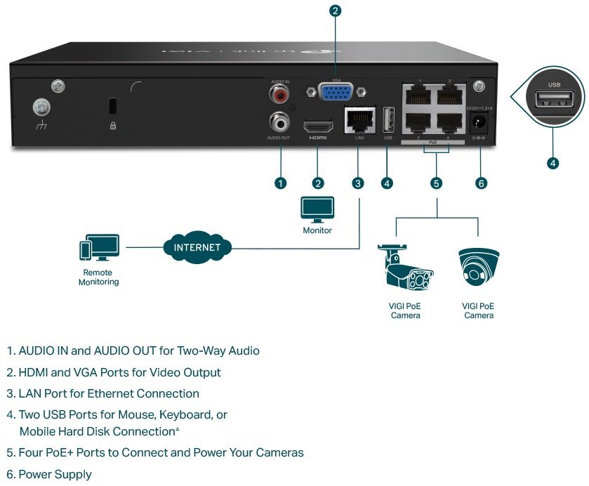 TP-LINK • VIGI NVR1004H-4P • NVR, NVR, 4 kanály, 4x PoE