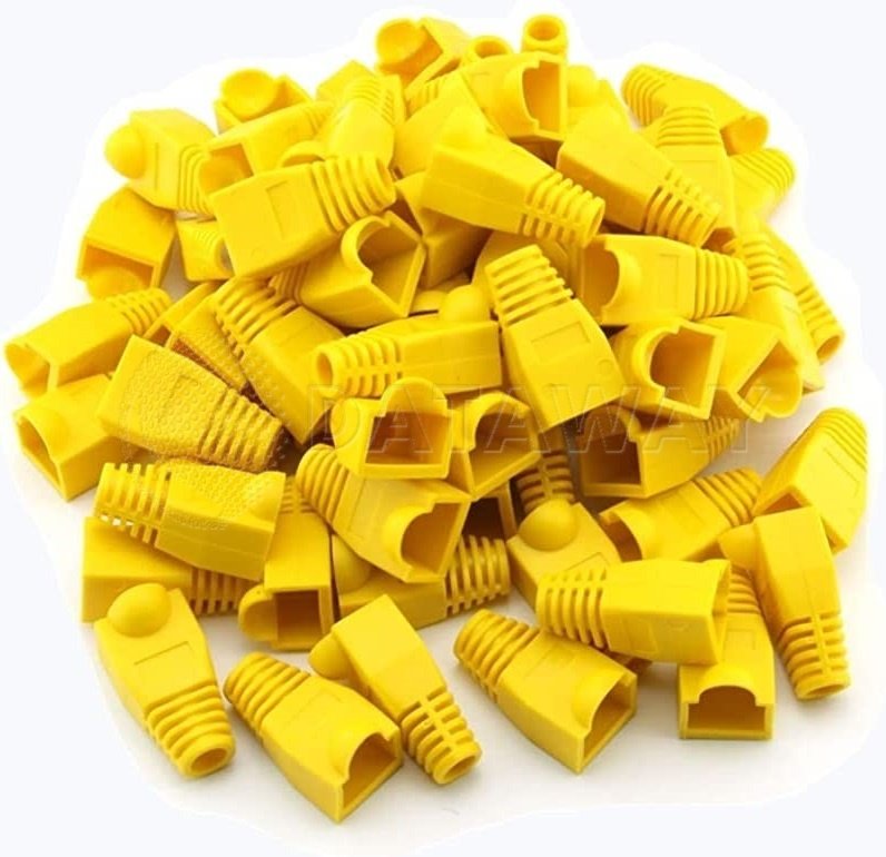 Plastová žlutá krytka konektoru RJ-45 pro síťové kabely kategorie CAT5 a CAT6. Balení obsahuje 100kusů.