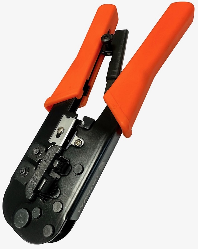 Krimpovací kleště pro upevňování konektorů RJ-45 na síťové kabely (tj. RJ45 8p8c, RJ12 6p6c, RJ11 6p4c, RJ10 4p4c a 4p2c).