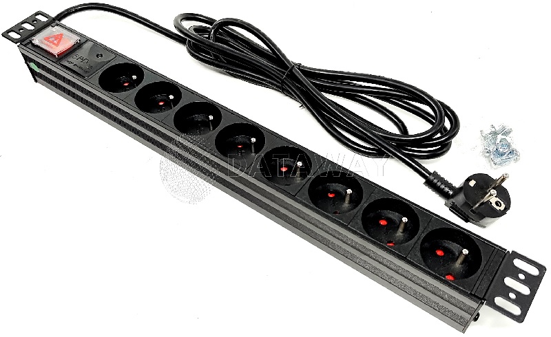 DATAWAY • PDU-8-SP-3M • Přepěťová ochrana 8x 230V, 1U, 19", M6, 3m
