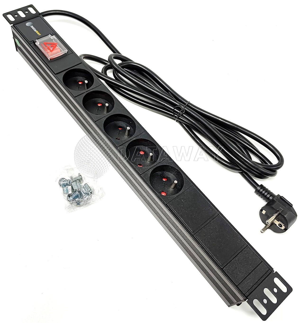 DATAWAY • PDU-5-PP-3M • Napájecí panel 5x 230V, 1U, 19", M6, 3m