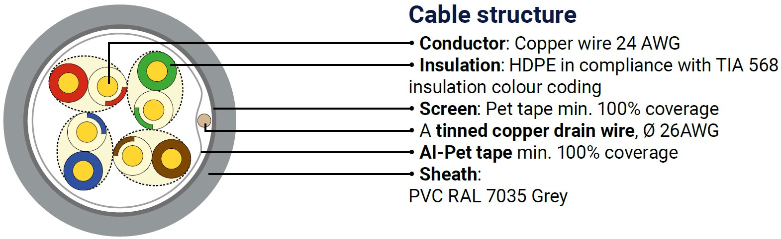 Kvalitní síťové stíněné kabely DATAWAY podporující protokoly 1000Base-Tkategorie CAT5E, s podporou šířky pásma až 100 MHz.
