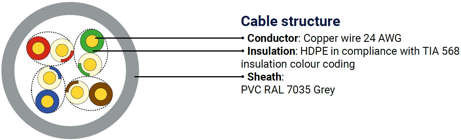 Tento kabel je vhodný pro použití v náročných síťových instalacích pro stabilní síťové připojení. Kabel je balen v kompaktní kartonové estetické krabici pro snadné odvinutí.