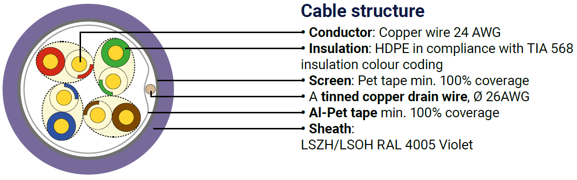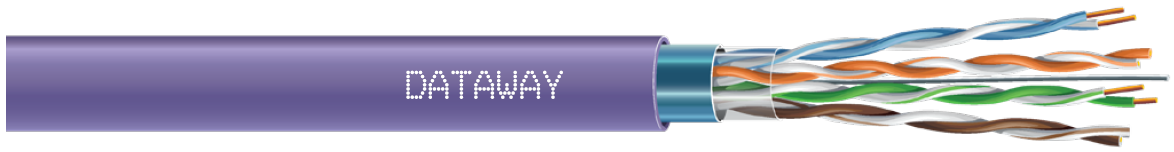 Kvalitní síťové stíněné kabely DATAWAY podporující protokoly 1000Base-T kategorie CAT5E , s podporou šířky pásma až 100 MHz.
