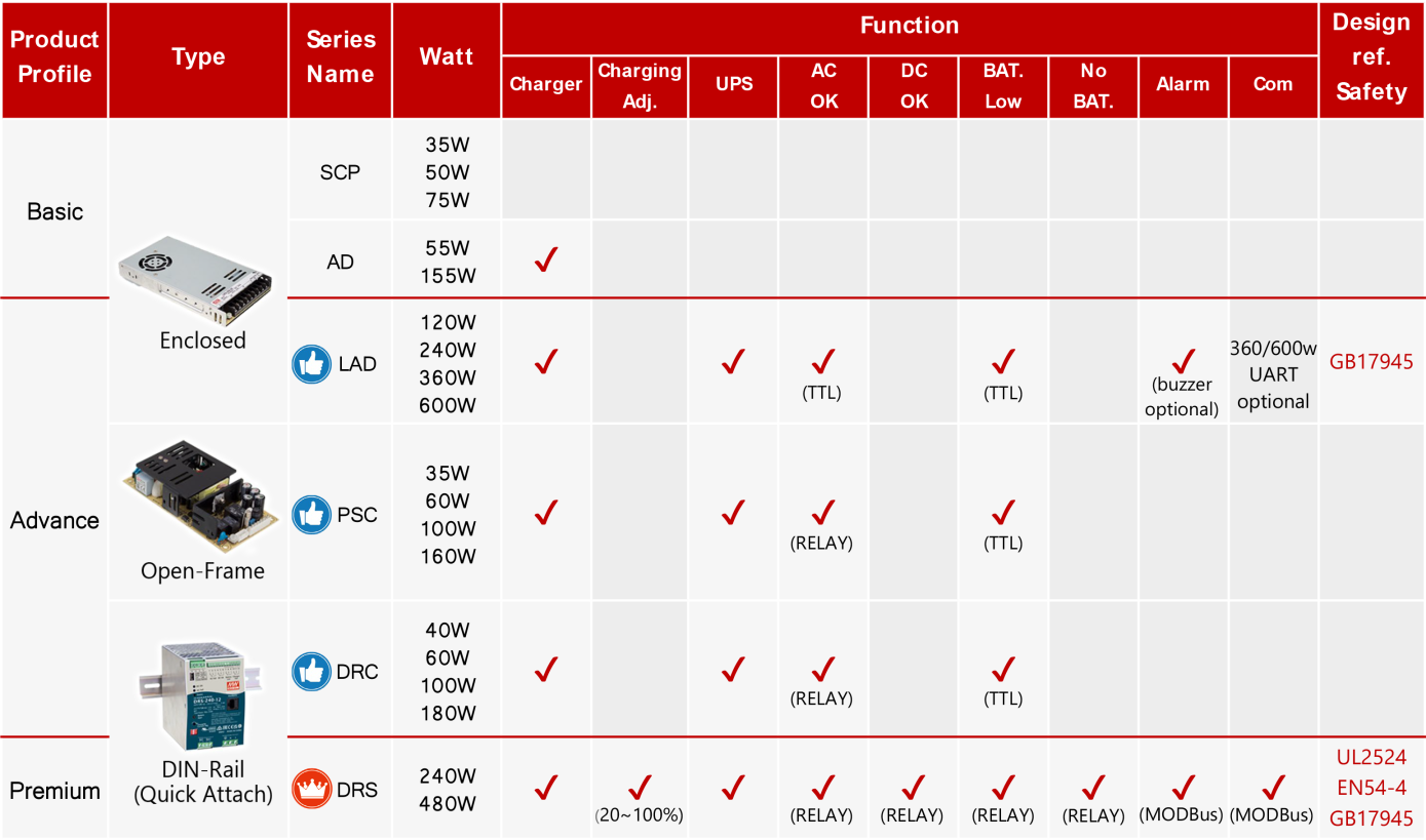 Inovovaná řada LAD-120 nahrazující předcházející modelovou řadu AD-155 jsou 120W úsporné průmyslové zdroje AC/DC s nízkým profilem a funkcí UPS