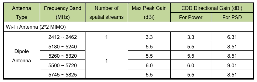 Zisk antény v pásmu 5 GHz (peak gain): 6.0 dBi