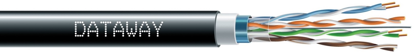 Kvalitní síťové stíněné dvouplášťové kabely pro venkovní použití DATAWAY podporující protokoly 1000Base-Tkategorie CAT5E, s podporou šířky pásma až 100 MHz.