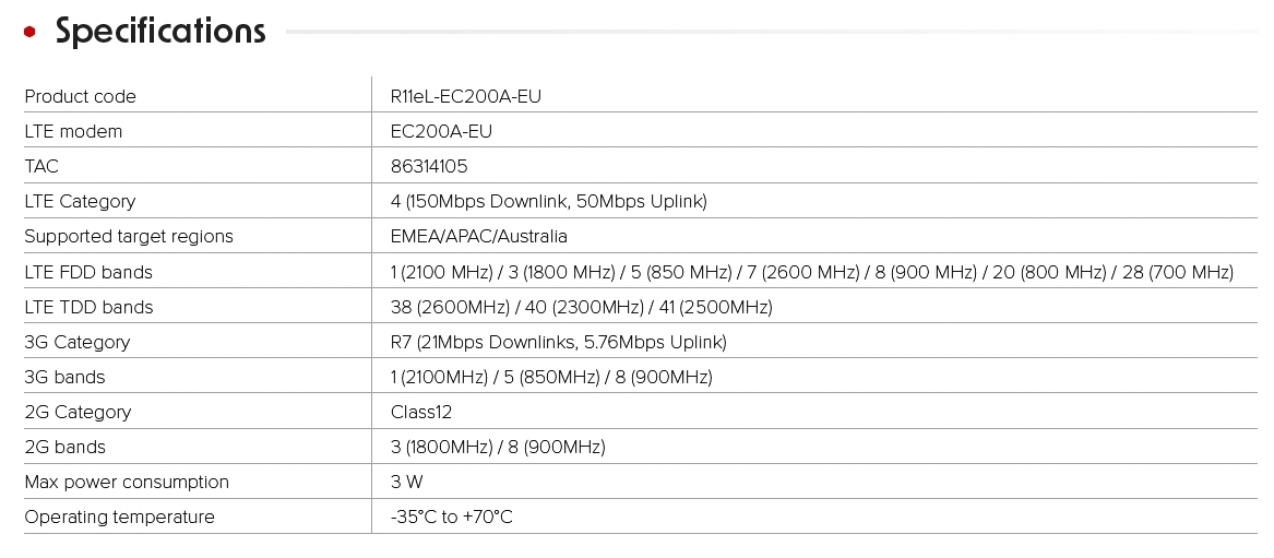 Tento modem mini-PCIe je určen pro regiony EMEA/APAC/Austrálie a mezi podporované frekvence patří oblíbené pásmo B28.