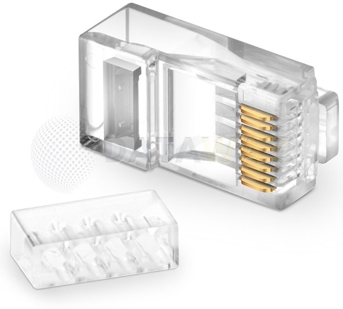 Krimpovací konektor DATAWAY RJ-45 pro krimpování k metalické kabeláži CAT6 v nestíněném provedení.