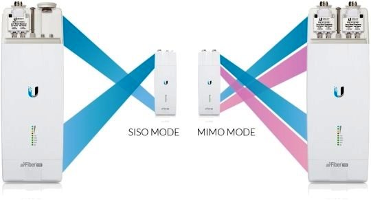 AirFiber 11 lze pomocí duplexorů provozovat v SISO (1 polarizace) nebo MIMO (2 polarizace) režimu v závislosti na lokálních podmínkách použití.