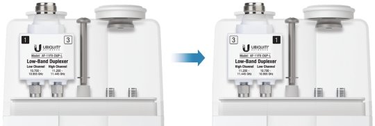 Pro změnu/prohození Tx/Rx frekvence v SISO/MIMO režimu stačí pootočit duplexor na jedné straně Vašeho spoje.