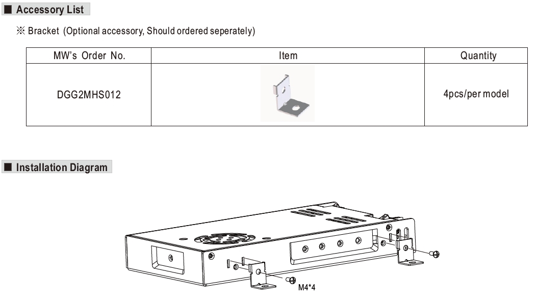 MEANWELL • MHS012 • Instalační úchytka k průmyslovým zdrojům série LAD-X