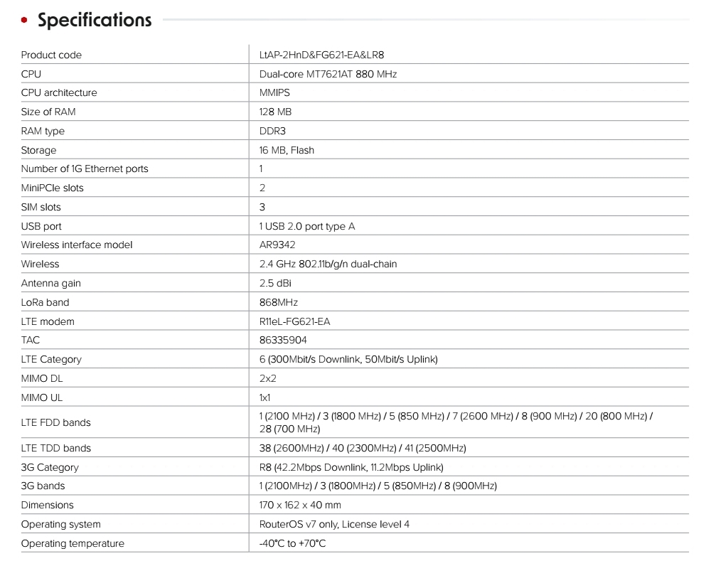 MIKROTIK • LtAP-2HnD&FG621-EA&LR8 • LtAP LR8 LTE6 kit