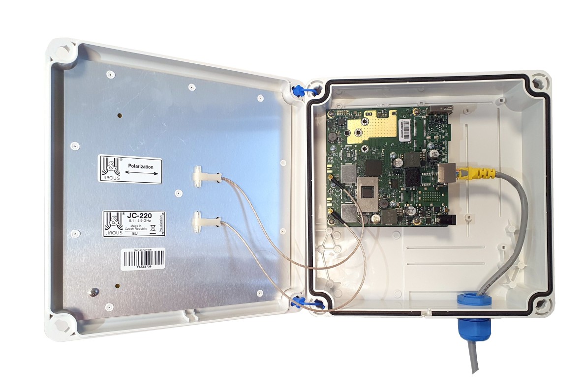 • dvoupolarizační GentleBox výrobce Jirous JC-220MCX s integrovanou 17dBi anténou (2x MMCX výstup)