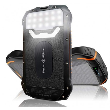 Fast charge solární powerbanka se reálnou kapacitou 25000 mAh (nabije až 4 zařízení najednou - max. 10W bezdrátově a PD20W přes kabel), vodě a prachu odolná, solární panel pro záložní dobíjení, bezdrátové nabíjení telefonů 5-10W, podpora quick charge 3.0, simultální nabijení a vybíjení až 4-mi konektory USB a C+, silná LED svítilna s SOS módem. První solární powerbanka pro rok 2024 na trhu podporující funkce Quick charge 3.0 a bezdrátového nabíjení 5W, při nízké váze díky použití nejmodernějších nabíjecích článků zaručující minimálně 500+ cyklů, se solárním panelem 200mAh pro doplňkové dobíjení.
