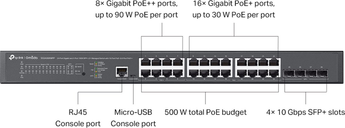 TP-LINK • SG3428XMPP • Omada managed switch L2+, PoE++, 500W