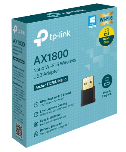 Bezdrátový USB 2.0 adaptér TP-Link Archer TX20U Nano vám umožní připojit se k bezdrátové síti pomocí Wi-Fi 6 připojení s rychlostí až 1201 Mbps v 5GHz pásmu a 574Mbps v 2,4GHz pásmu. Adaptér podporuje technologie MU-MIMO, OFDMA a nejnovější standard šifrování WPA3. Díky uloženému vlastnímu ovladači je adaptér plug and play a je plně kompatibilní s Windows 10/11.