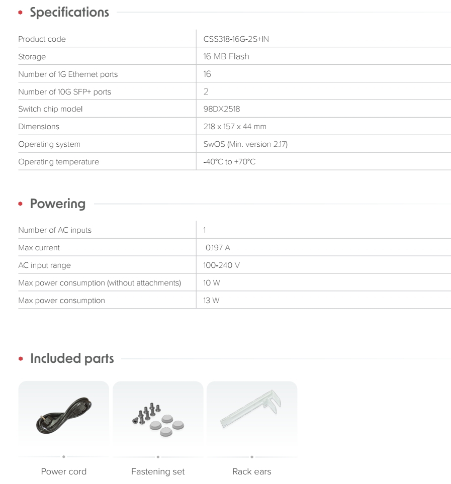 MIKROTIK • CSS318-16G-2S+IN • 18-portový switch (16x GB Eth, 2x SFP+)
