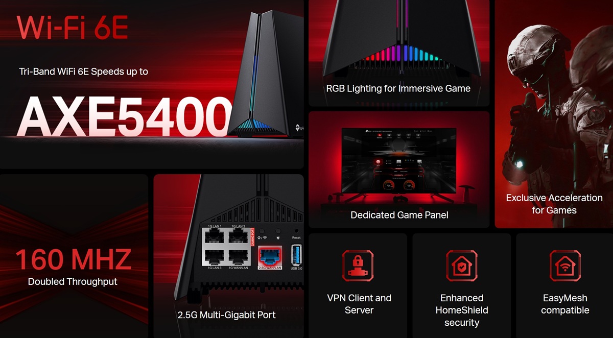AXE5400 Tri-Band Wi-Fi 6E Gaming Router