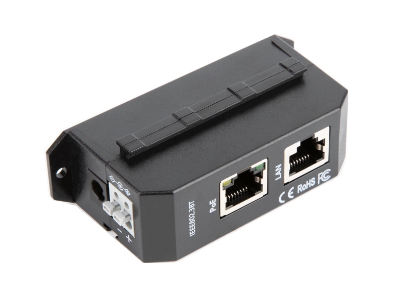 802.3af/at/bt PoE injektor s podporou rychlostí 10/100/1000/2500 Mbps pro napájení aktivních prvků s integrovaným PoE extraktorem po ethernetovém kabelu. Injektor je vhodný pro širokou škálu síťových prvků (přístupové body, IP kamery, VoIP, modemy, apo