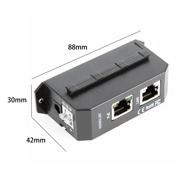 Gigabitový PoE injektor pro napájení aktivních prvků s integrovaným PoE extraktorem po ethernetovém kabelu. Injektor je vhodný pro napájení široké škály síťových prvků (přístupové body, IP kamery, modemy, apod.).