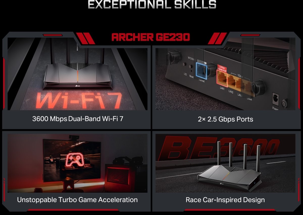TP-LINK • Archer GE230 • Dual-band gaming Wi-Fi 7 router