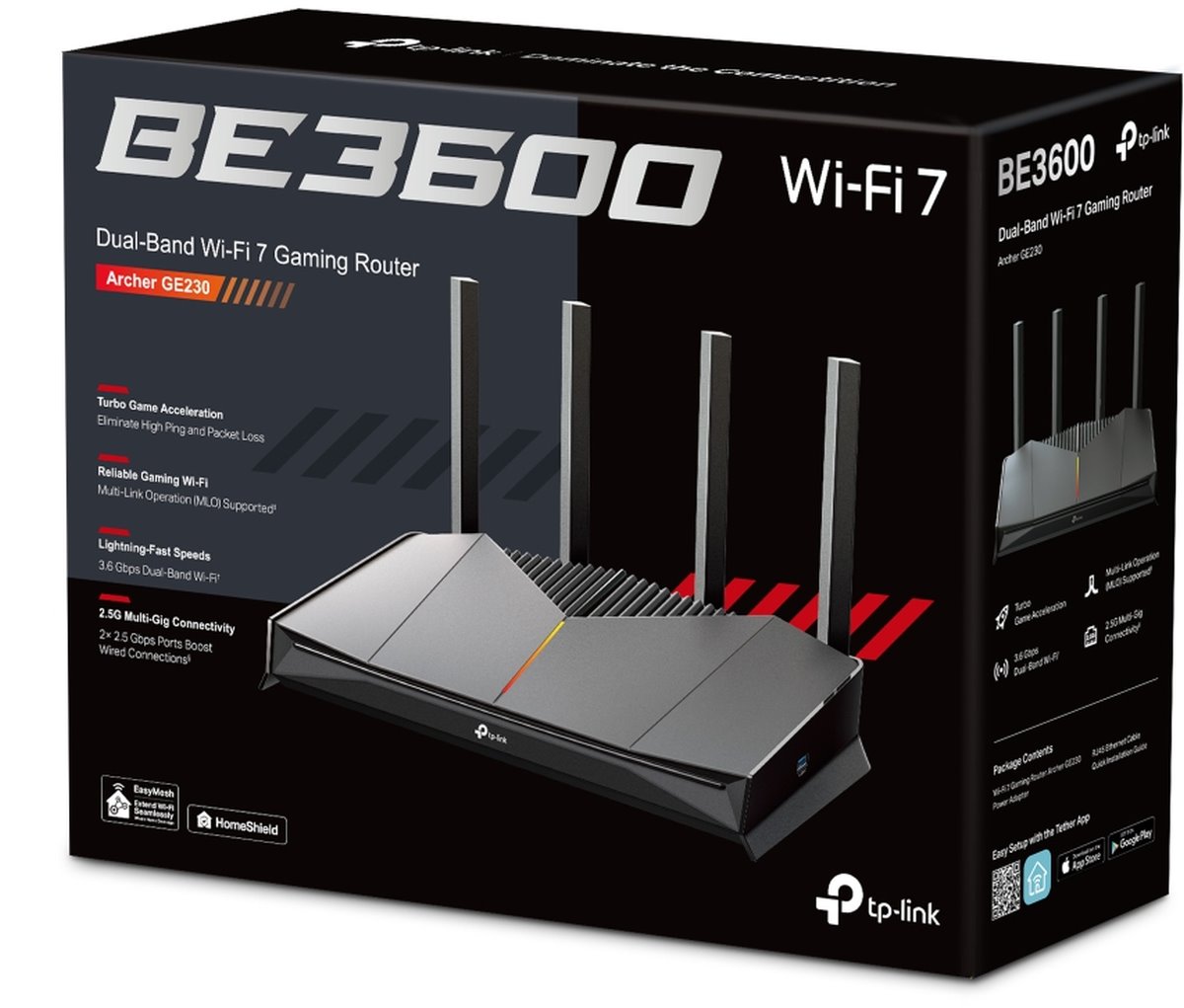 Archer GE230 je navržen tak, aby zajistil budoucnost vašeho hraní díky Wi-Fi 7 a poskytuje herní zážitek bez zasekávání s pomocí 4K-QAM a Multi-Link Operation a dosahuje kombinované rychlosti až 3,6 Gb/s.