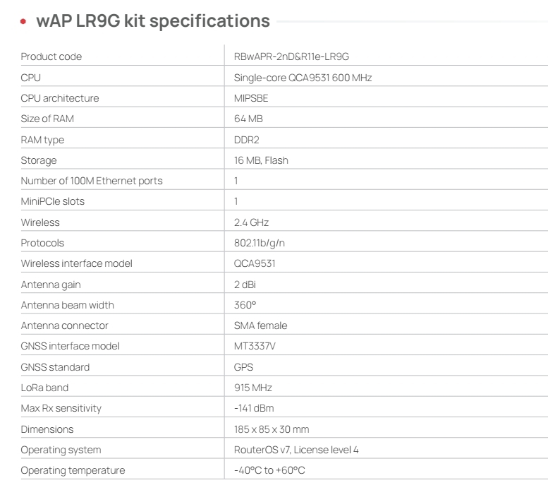 MIKROTIK • RBwAPR-2nD&R11e-LR9G • 2,4GHz LoRa gateway wAP LR9G kit