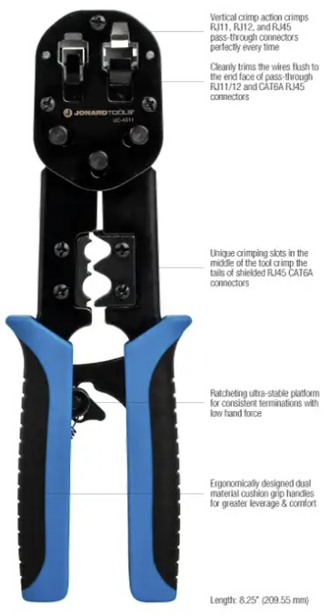 Jonard • UC-4511 • Krimpovací kleště (CAT3 až CAT6A) RJ45, RJ11/12