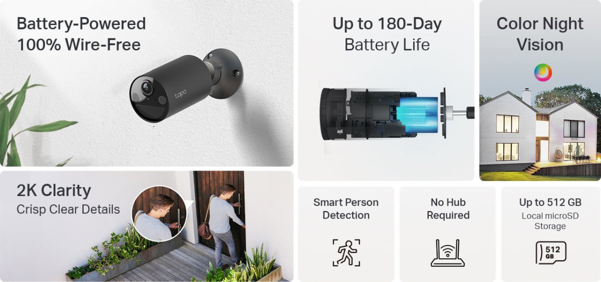 Využijte naprostou svobodu díky bezdrátovému provedení modelu C411, který je napájen z baterie. Jeho všestrannost odstraňuje omezení zásuvek a umožňuje mimořádně flexibilní monitorování vnitřních i venkovních prostor odkudkoli. Komunikujte s hosty nebo doručovateli na dálku prostřednictvím zřetelného obousměrného zvuku, který nabízí pohodlí i v době vaší nepřítomnosti. Tapo C411 je kompatibilní se službami Alexa a Google Assistant a umožňuje vám kontrolovat váš dvorek pomocí hlasových příkazů. I při bouřce, výpadku proudu nebo přerušení Wi-Fi Tapo C411 pokračuje v nahrávání a zajišťuje stálou bezpečnost.