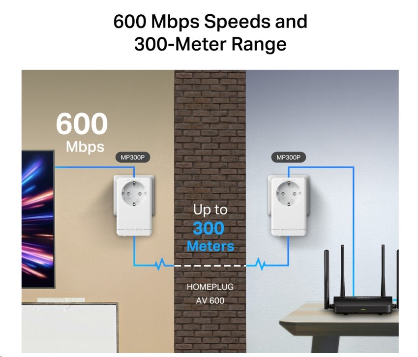 MERCUSYS • MP300P KIT • AV600 Průchozí Powerline Starter Kit