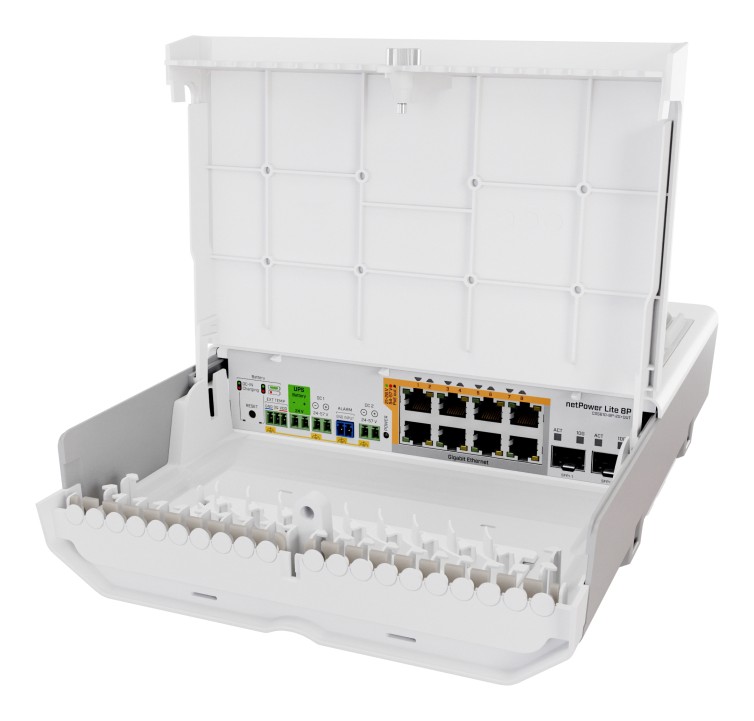 MIKROTIK • CSS610-8P-2S+OUT • Venkovní PoE switch s UPS netPower Lite 8P